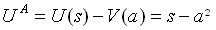 Aus Gleichung 2 ergibt sich die Interpretationsmöglichkeit des Faktors [theta] als ein Basisüberschuß, der in jedem Fall erreicht wird (z.B. aufgrund einer bestimmten Marktsituation), auch ohne einen besonderen Arbeitseinsatz durch den Manager (a = 0). Für den Manager ergibt sich dann eine Nutzenfunktion, die sich aus der Subtraktion des Arbeitsleides vom Nutzen der Entlohnung s ergibt. Für den Disnutzen gilt vereinfacht ein quadratischer Zusammenhang, da mit steigendem Arbeitseinsatz, das Arbeitsleid und das Grenzarbeitsleid steigen.[32]