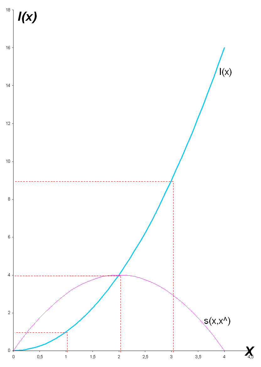 Die a priori festgelegte Funktion s(x,) wird hier aus Gründen der Vereinfachung mit einer Basisentlohnung = 0 definiert. Die Funktion l(x) ist nur exemplarisch vorgegeben und kann im Bedarfsfall entsprechend gestaltet werden.