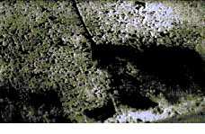 Das Baugerüst, dessen eine Ecke von einer nackten Birne beleuchtet wird, jetzt im Dunkel des Abends. Schwenk auf das Stadion. Die Lampen heben sich vom dunklen Hintergrund ab. /
