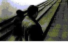 Der Lattenzaun des Bauplatzes. Der Unbekannte verschwindet im Hintergrund. /